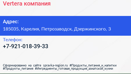 Vertera, компания по адресу 185035, Карелия, Петрозаводск, Дзержинского, 3 в дальнейшем Организация, размещена в следующих категориях: