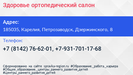 Здоровье, ортопедический салон по адресу 185035, Карелия, Петрозаводск, Дзержинского, 8 в дальнейшем Организация, размещена в следующих категориях:
