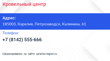 Кровельный центр по адресу 185003, Карелия, Петрозаводск, Калинина, 61 в дальнейшем Организация, размещена в следующих категориях:
