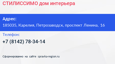 СТИЛИССИМО, дом интерьера по адресу 185035, Карелия, Петрозаводск, проспект Ленина, 16 в дальнейшем Организация, размещена в следующих категориях: