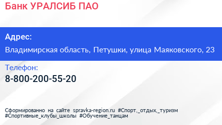Банк УРАЛСИБ, ПАО по адресу Владимирская область, Петушки, улица Маяковского, 23 в дальнейшем Организация, размещена в следующих категориях: