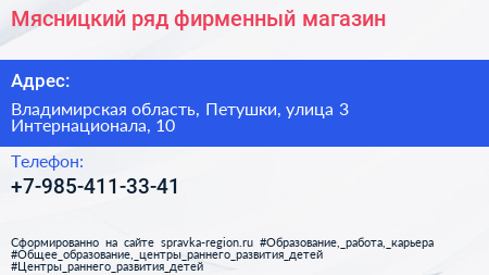 Мясницкий ряд, фирменный магазин по адресу Владимирская область, Петушки, улица 3 Интернационала, 10 в дальнейшем Организация, размещена в следующих категориях: