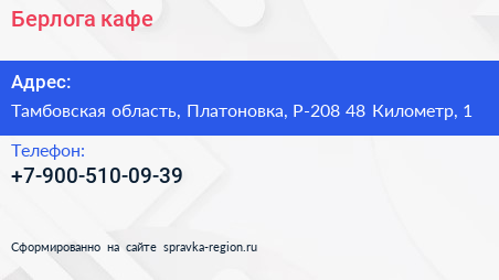 Берлога, кафе по адресу Тамбовская область, Платоновка, Р-208 48 Километр, 1 в дальнейшем Организация, размещена в следующих категориях: