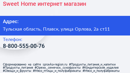 Sweet-Home, интернет-магазин по адресу Тульская область, Плавск, улица Орлова, 2а ст11 в дальнейшем Организация, размещена в следующих категориях: