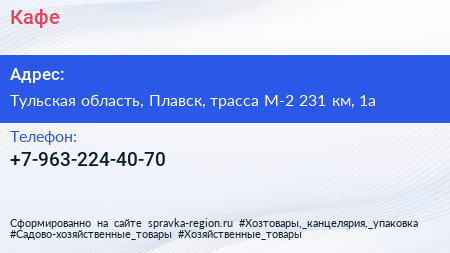 Кафе по адресу Тульская область, Плавск, трасса М-2 231 км, 1а в дальнейшем Организация, размещена в следующих категориях: