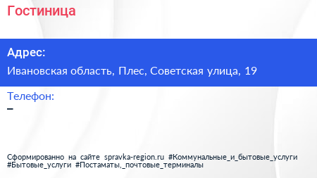 Гостиница по адресу Ивановская область, Плес, Советская улица, 19 в дальнейшем Организация, размещена в следующих категориях: