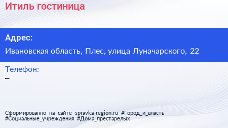 Итиль, гостиница по адресу Ивановская область, Плес, улица Луначарского, 22 в дальнейшем Организация, размещена в следующих категориях: