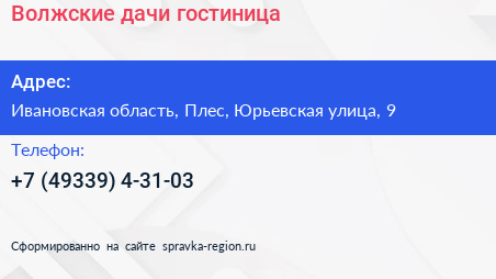 Волжские дачи, гостиница по адресу Ивановская область, Плес, Юрьевская улица, 9 в дальнейшем Организация, размещена в следующих категориях: