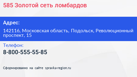 585*Золотой, сеть ломбардов по адресу 142116, Московская область, Подольск, Революционный проспект, 15 в дальнейшем Организация, размещена в следующих категориях: