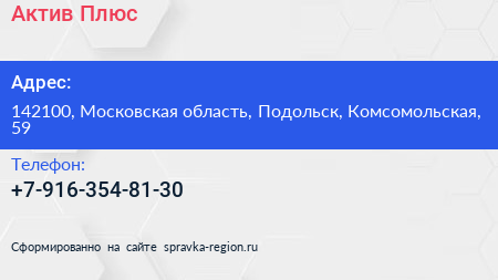 Актив Плюс по адресу 142100, Московская область, Подольск, Комсомольская, 59 в дальнейшем Организация, размещена в следующих категориях: