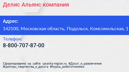 Делис Альянс, компания по адресу 142100, Московская область, Подольск, Комсомольская, 1 в дальнейшем Организация, размещена в следующих категориях:
