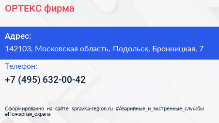ОРТЕКС, фирма по адресу 142103, Московская область, Подольск, Бронницкая, 7 в дальнейшем Организация, размещена в следующих категориях: