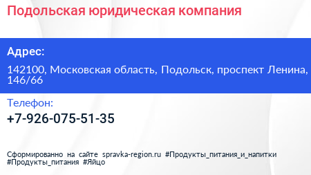 Подольская юридическая компания по адресу 142100, Московская область, Подольск, проспект Ленина, 146/66 в дальнейшем Организация, размещена в следующих категориях: