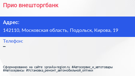Прио-внешторгбанк по адресу 142110, Московская область, Подольск, Кирова, 19 в дальнейшем Организация, размещена в следующих категориях: