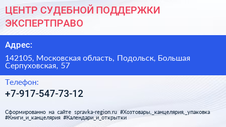 ЦЕНТР СУДЕБНОЙ ПОДДЕРЖКИ-ЭКСПЕРТПРАВО по адресу 142105, Московская область, Подольск, Большая Серпуховская, 57 в дальнейшем Организация, размещена в следующих категориях: