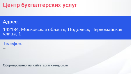 Центр бухгалтерских услуг по адресу 142184, Московская область, Подольск, Первомайская улица, 1 в дальнейшем Организация, размещена в следующих категориях: