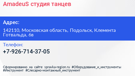 AmadeuS, студия танцев по адресу 142110, Московская область, Подольск, Клемента Готвальда, 6в в дальнейшем Организация, размещена в следующих категориях: