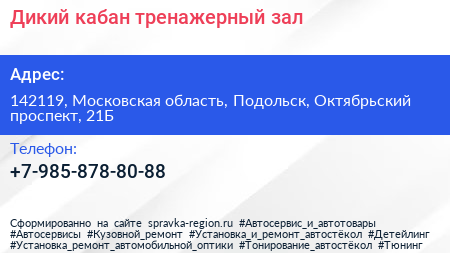 Дикий кабан, тренажерный зал по адресу 142119, Московская область, Подольск, Октябрьский проспект, 21Б в дальнейшем Организация, размещена в следующих категориях: