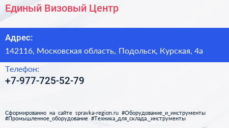 Единый Визовый Центр по адресу 142116, Московская область, Подольск, Курская, 4а в дальнейшем Организация, размещена в следующих категориях: