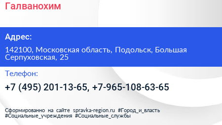 Галванохим по адресу 142100, Московская область, Подольск, Большая Серпуховская, 25 в дальнейшем Организация, размещена в следующих категориях: