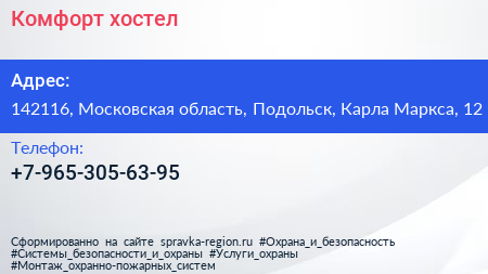 Комфорт, хостел по адресу 142116, Московская область, Подольск, Карла Маркса, 12 в дальнейшем Организация, размещена в следующих категориях: