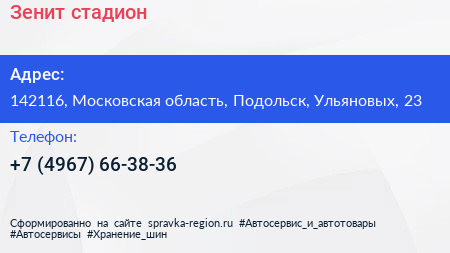 Зенит, стадион по адресу 142116, Московская область, Подольск, Ульяновых, 23 в дальнейшем Организация, размещена в следующих категориях: