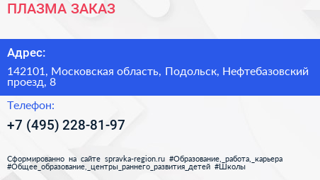 ПЛАЗМА ЗАКАЗ по адресу 142101, Московская область, Подольск, Нефтебазовский проезд, 8 в дальнейшем Организация, размещена в следующих категориях: