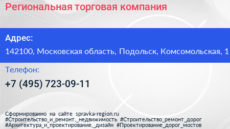 Региональная торговая компания по адресу 142100, Московская область, Подольск, Комсомольская, 1 в дальнейшем Организация, размещена в следующих категориях: