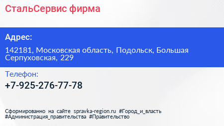 СтальСервис, фирма по адресу 142181, Московская область, Подольск, Большая Серпуховская, 229 в дальнейшем Организация, размещена в следующих категориях: