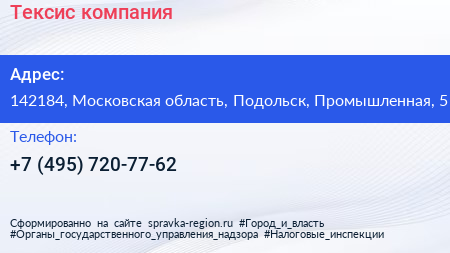 Тексис, компания по адресу 142184, Московская область, Подольск, Промышленная, 5 в дальнейшем Организация, размещена в следующих категориях: