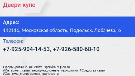 Двери купе по адресу 142116, Московская область, Подольск, Лобачева, 6 в дальнейшем Организация, размещена в следующих категориях: