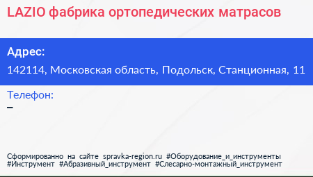 LAZIO, фабрика ортопедических матрасов по адресу 142114, Московская область, Подольск, Станционная, 11 в дальнейшем Организация, размещена в следующих категориях: