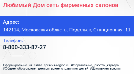 Любимый Дом, сеть фирменных салонов по адресу 142114, Московская область, Подольск, Станционная, 11 в дальнейшем Организация, размещена в следующих категориях: