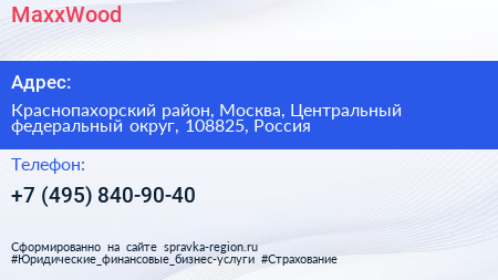 MaxxWood по адресу Краснопахорский район, Москва, Центральный федеральный округ, 108825, Россия в дальнейшем Организация, размещена в следующих категориях: