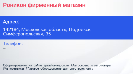 Роникон, фирменный магазин по адресу 142184, Московская область, Подольск, Симферопольская, 35 в дальнейшем Организация, размещена в следующих категориях: