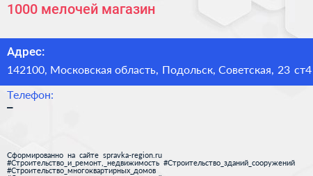 1000 мелочей, магазин по адресу 142100, Московская область, Подольск, Советская, 23 ст4 в дальнейшем Организация, размещена в следующих категориях: