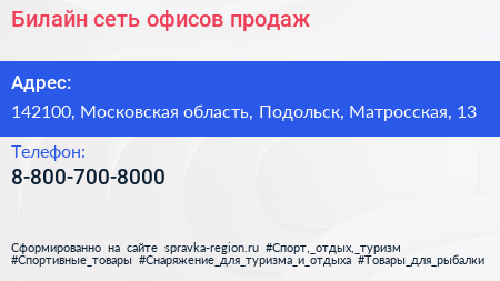 Билайн, сеть офисов продаж по адресу 142100, Московская область, Подольск, Матросская, 13 в дальнейшем Организация, размещена в следующих категориях: