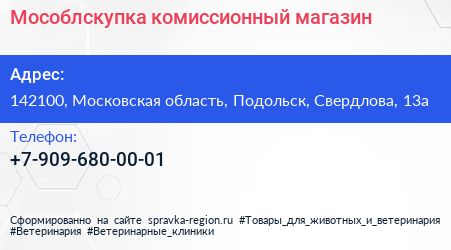 Мособлскупка, комиссионный магазин по адресу 142100, Московская область, Подольск, Свердлова, 13а в дальнейшем Организация, размещена в следующих категориях:
