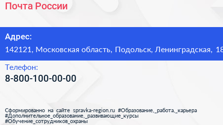 Почта России по адресу 142121, Московская область, Подольск, Ленинградская, 18 в дальнейшем Организация, размещена в следующих категориях: