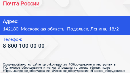 Почта России по адресу 142180, Московская область, Подольск, Ленина, 18/2 в дальнейшем Организация, размещена в следующих категориях: