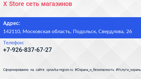 X-Store, сеть магазинов по адресу 142110, Московская область, Подольск, Свердлова, 26 в дальнейшем Организация, размещена в следующих категориях: