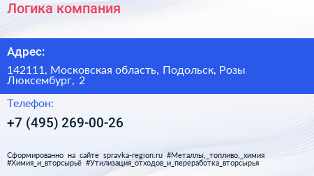 Логика, компания по адресу 142111, Московская область, Подольск, Розы Люксембург, 2 в дальнейшем Организация, размещена в следующих категориях: