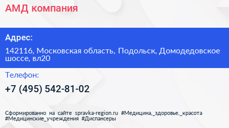 АМД, компания по адресу 142116, Московская область, Подольск, Домодедовское шоссе, вл20 в дальнейшем Организация, размещена в следующих категориях: