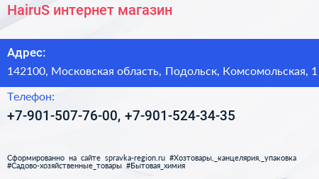 HairuS, интернет-магазин по адресу 142100, Московская область, Подольск, Комсомольская, 1 в дальнейшем Организация, размещена в следующих категориях: