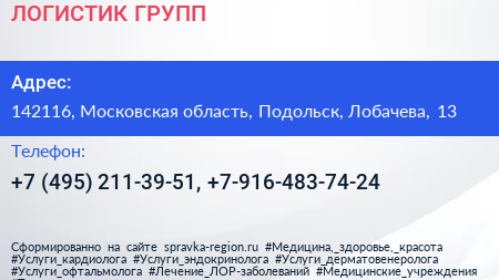 ЛОГИСТИК ГРУПП по адресу 142116, Московская область, Подольск, Лобачева, 13 в дальнейшем Организация, размещена в следующих категориях: