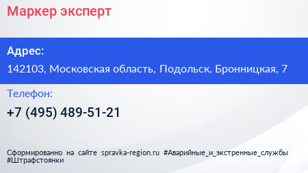 Маркер эксперт по адресу 142103, Московская область, Подольск, Бронницкая, 7 в дальнейшем Организация, размещена в следующих категориях: