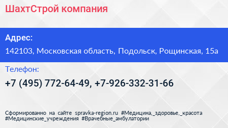 ШахтСтрой, компания по адресу 142103, Московская область, Подольск, Рощинская, 15а в дальнейшем Организация, размещена в следующих категориях: