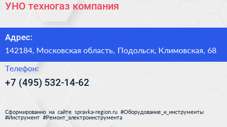 УНО техногаз, компания по адресу 142184, Московская область, Подольск, Климовская, 68 в дальнейшем Организация, размещена в следующих категориях: