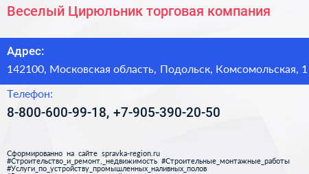 Веселый Цирюльник, торговая компания по адресу 142100, Московская область, Подольск, Комсомольская, 1 в дальнейшем Организация, размещена в следующих категориях:
