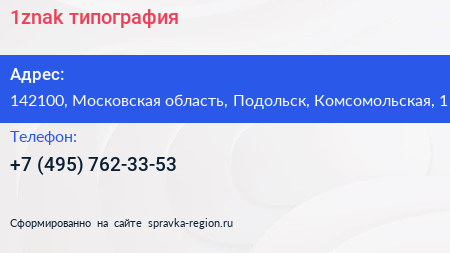 1znak, типография по адресу 142100, Московская область, Подольск, Комсомольская, 1 в дальнейшем Организация, размещена в следующих категориях: